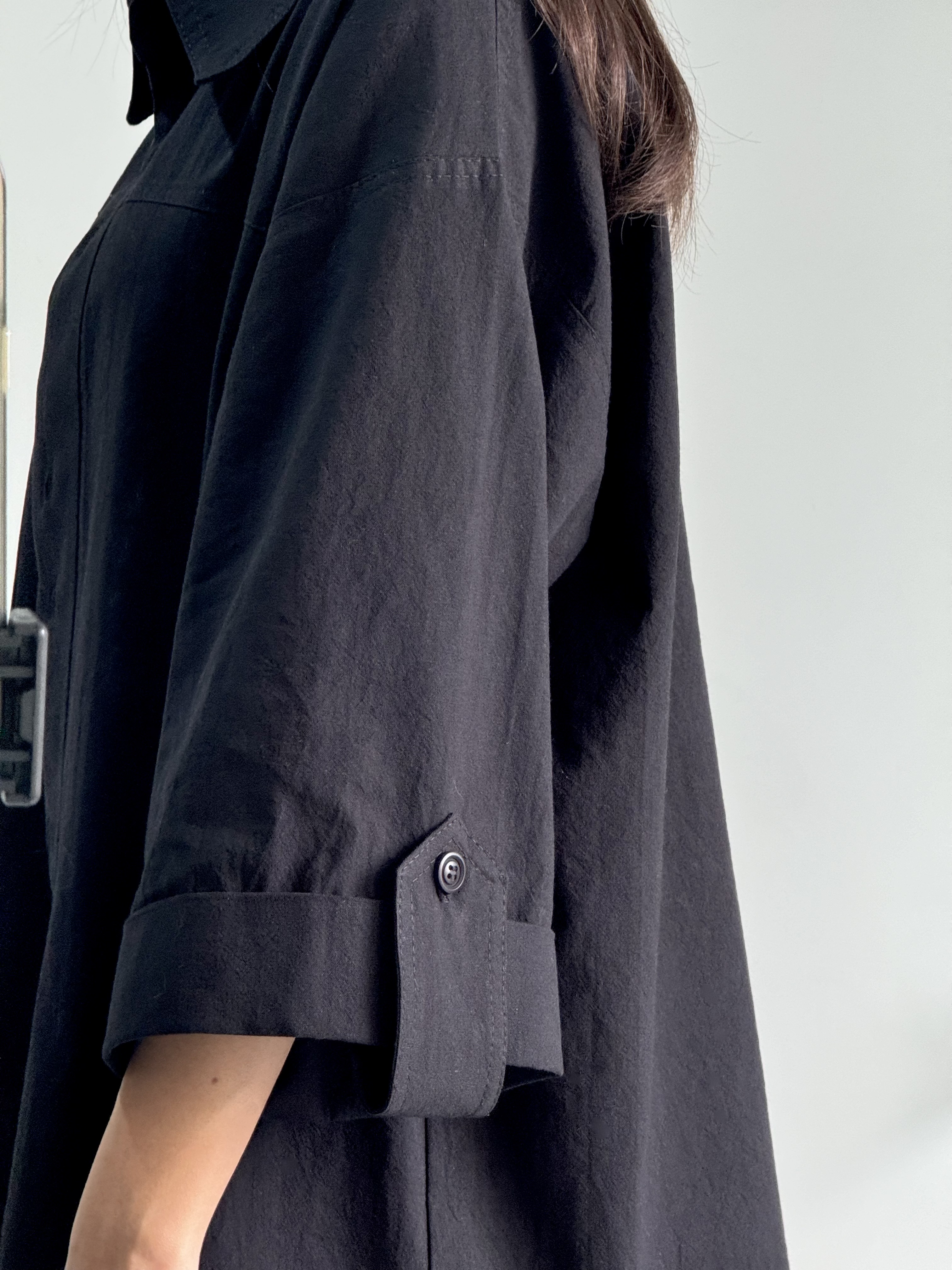 ✔ با شلوار پارچهای یا دامن ساده و کفش رسمیتر—میتوانید شومیز را تا کنید یا نیمه داخل شلوار قرار دهید برای استایل حرفهایتر.