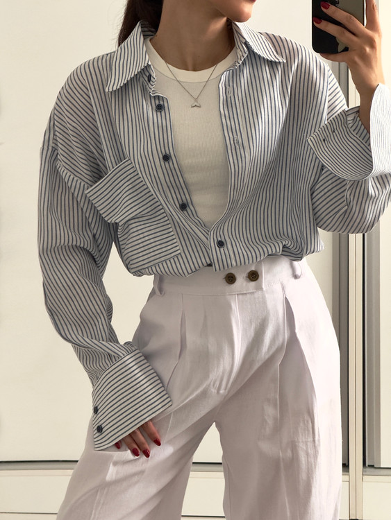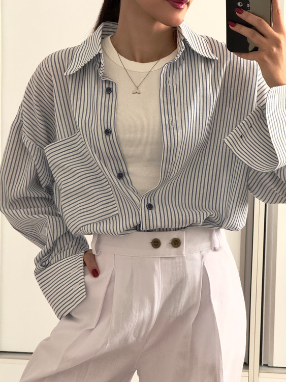 شومیز راه راه لینن ترک زنانه