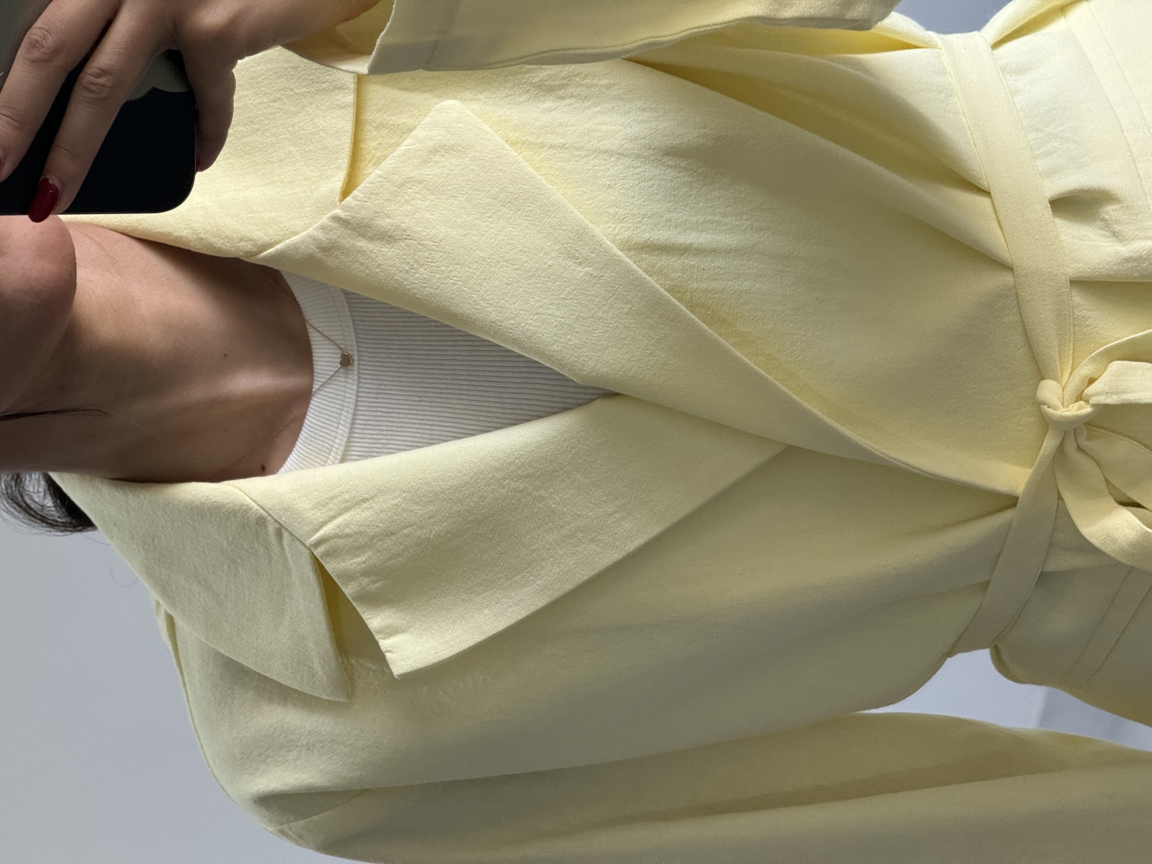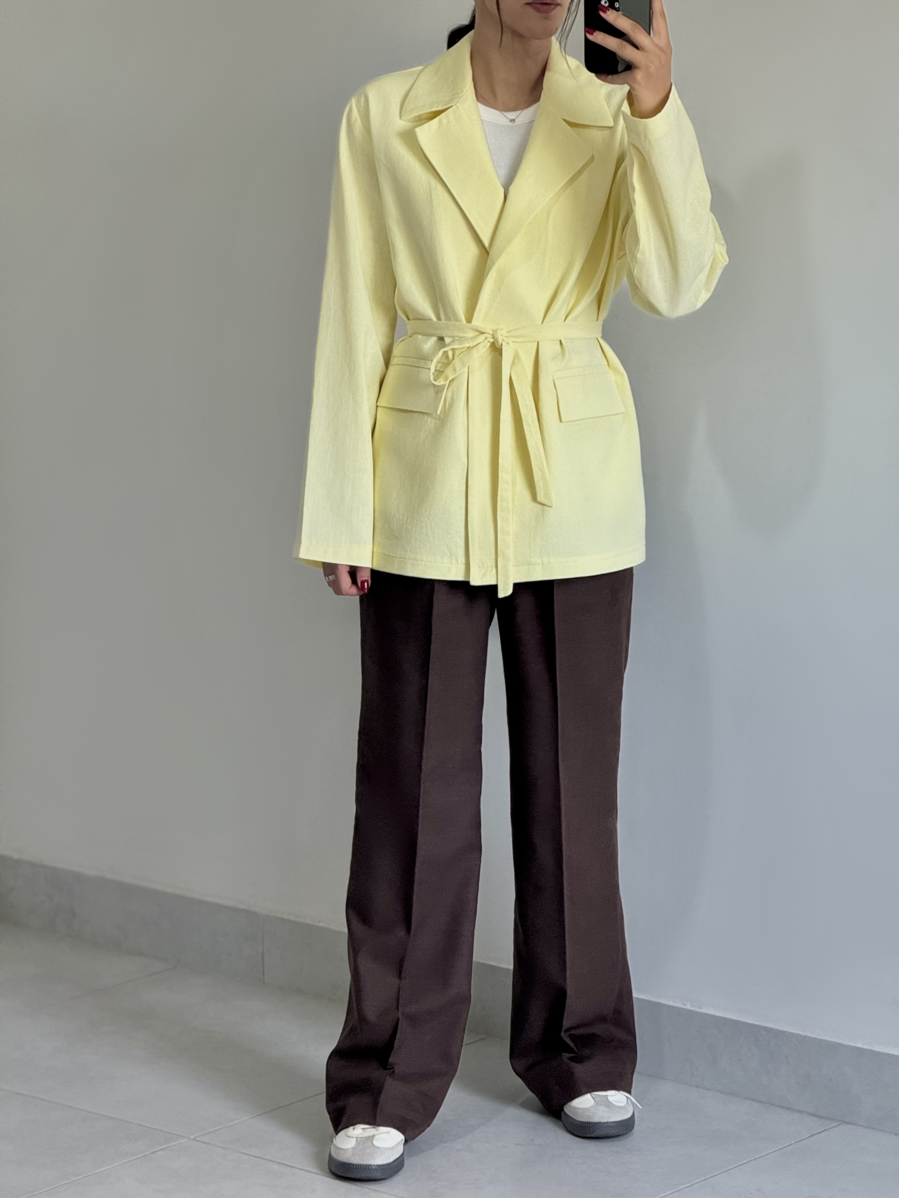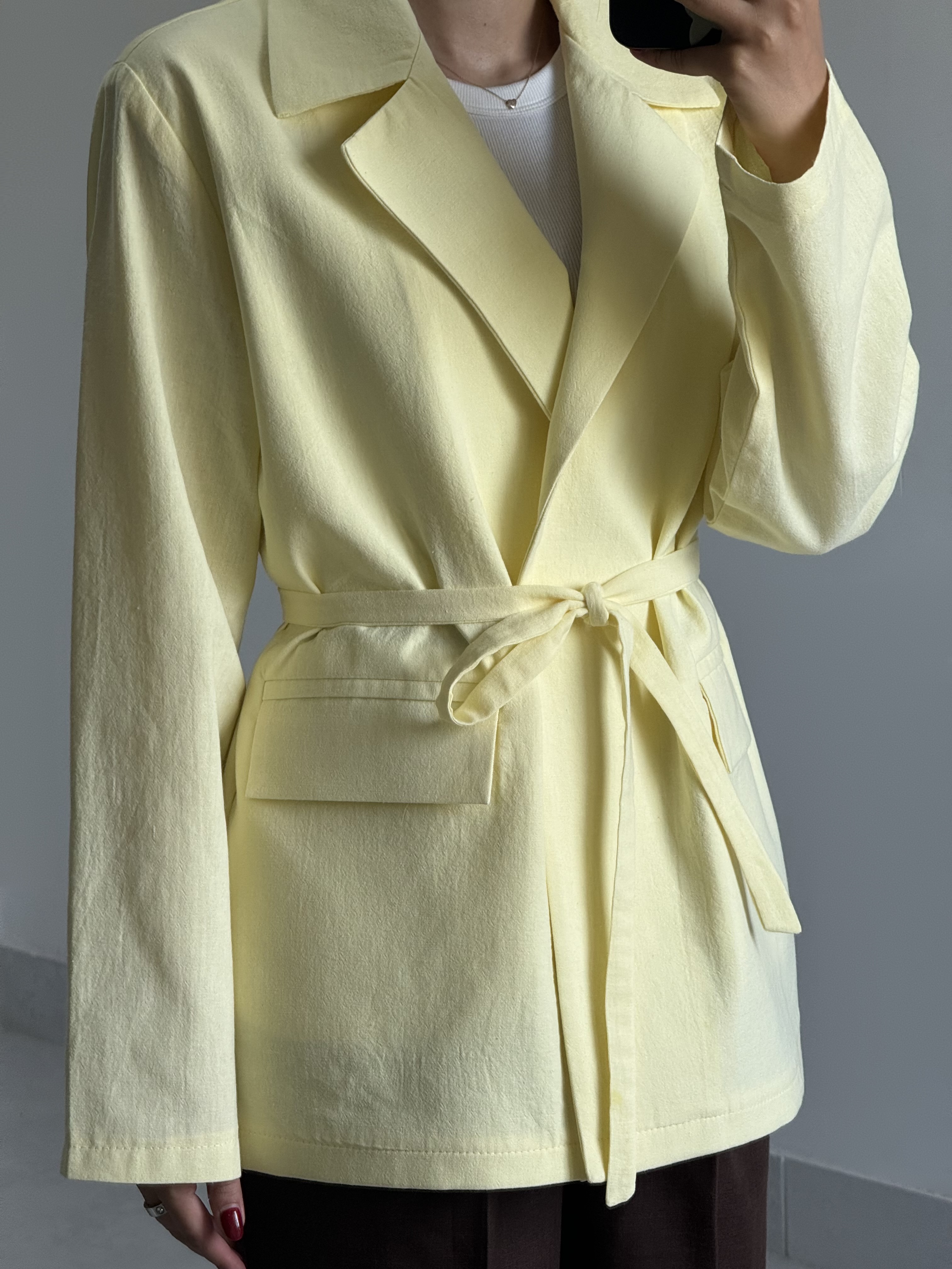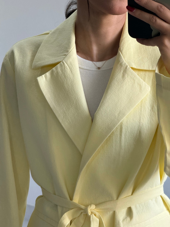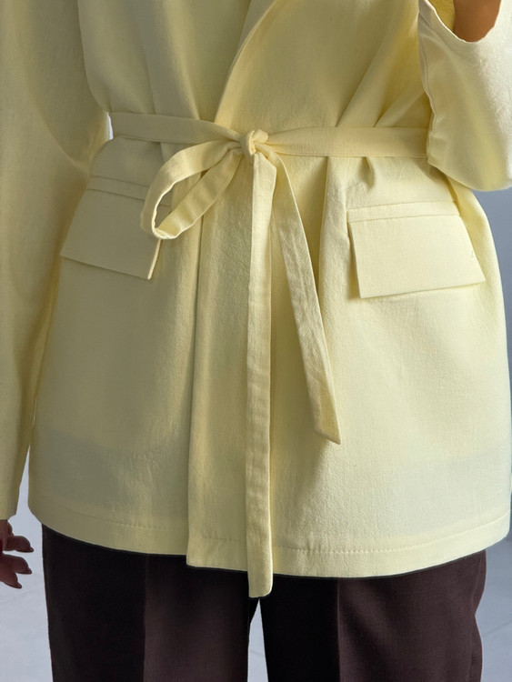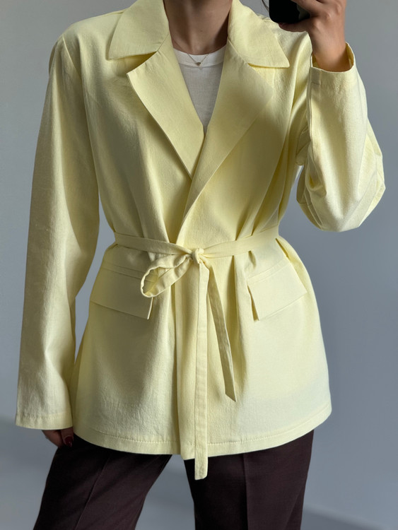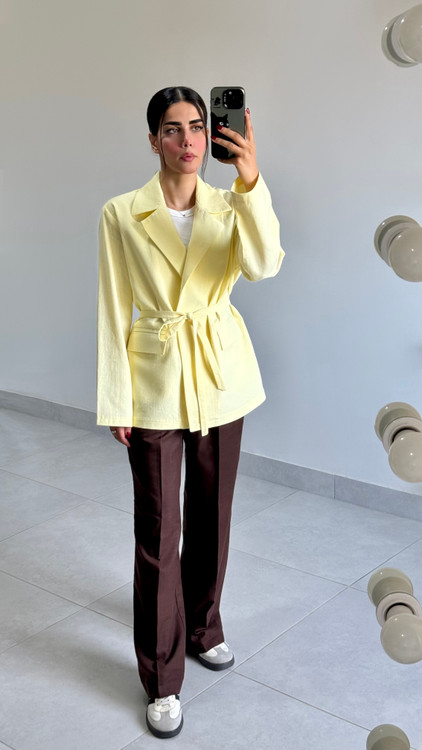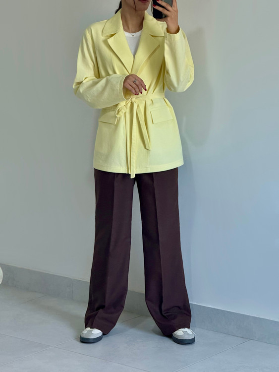 کت کلاسیک لینن زنانه زرد کره‌ای
