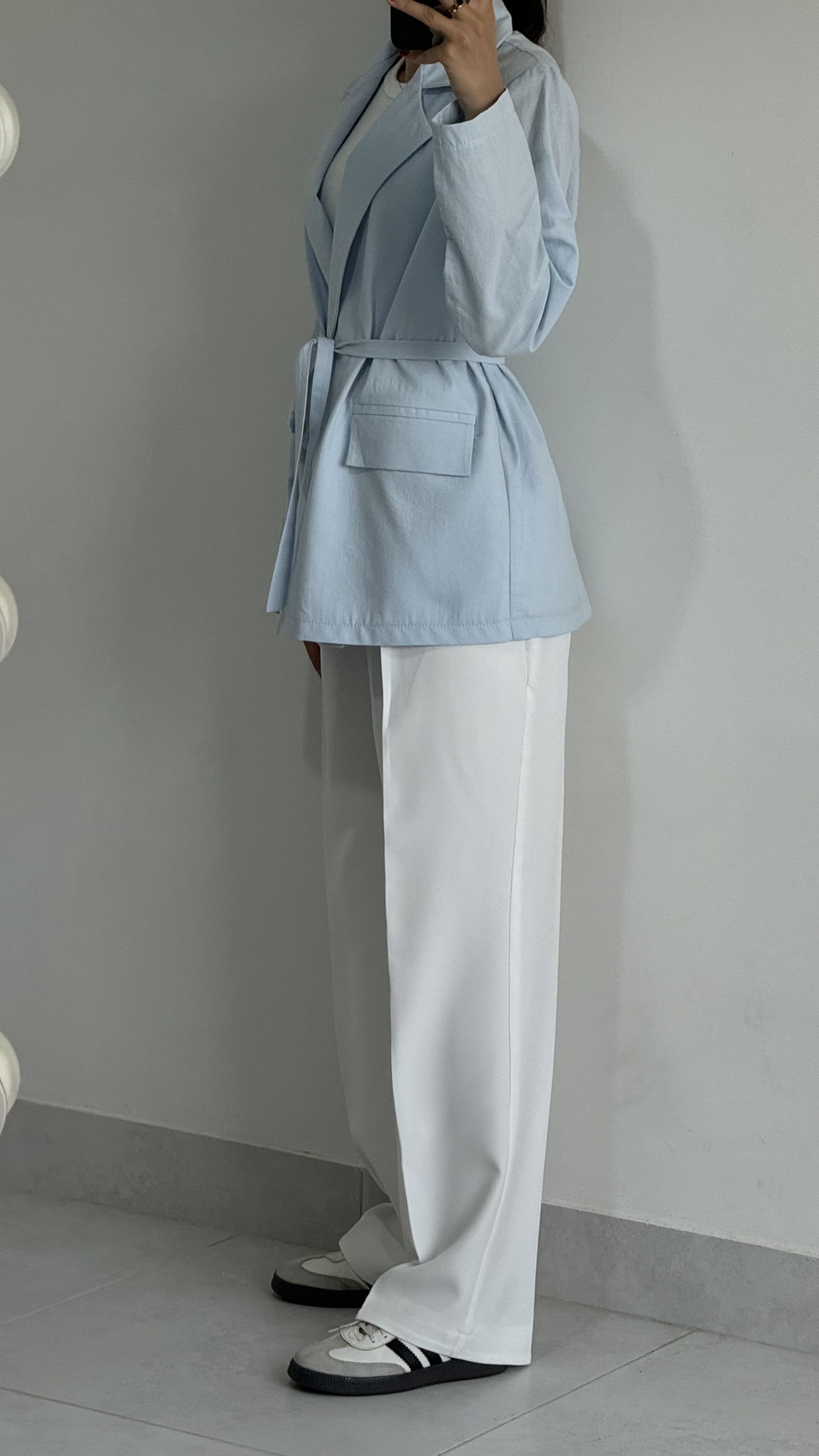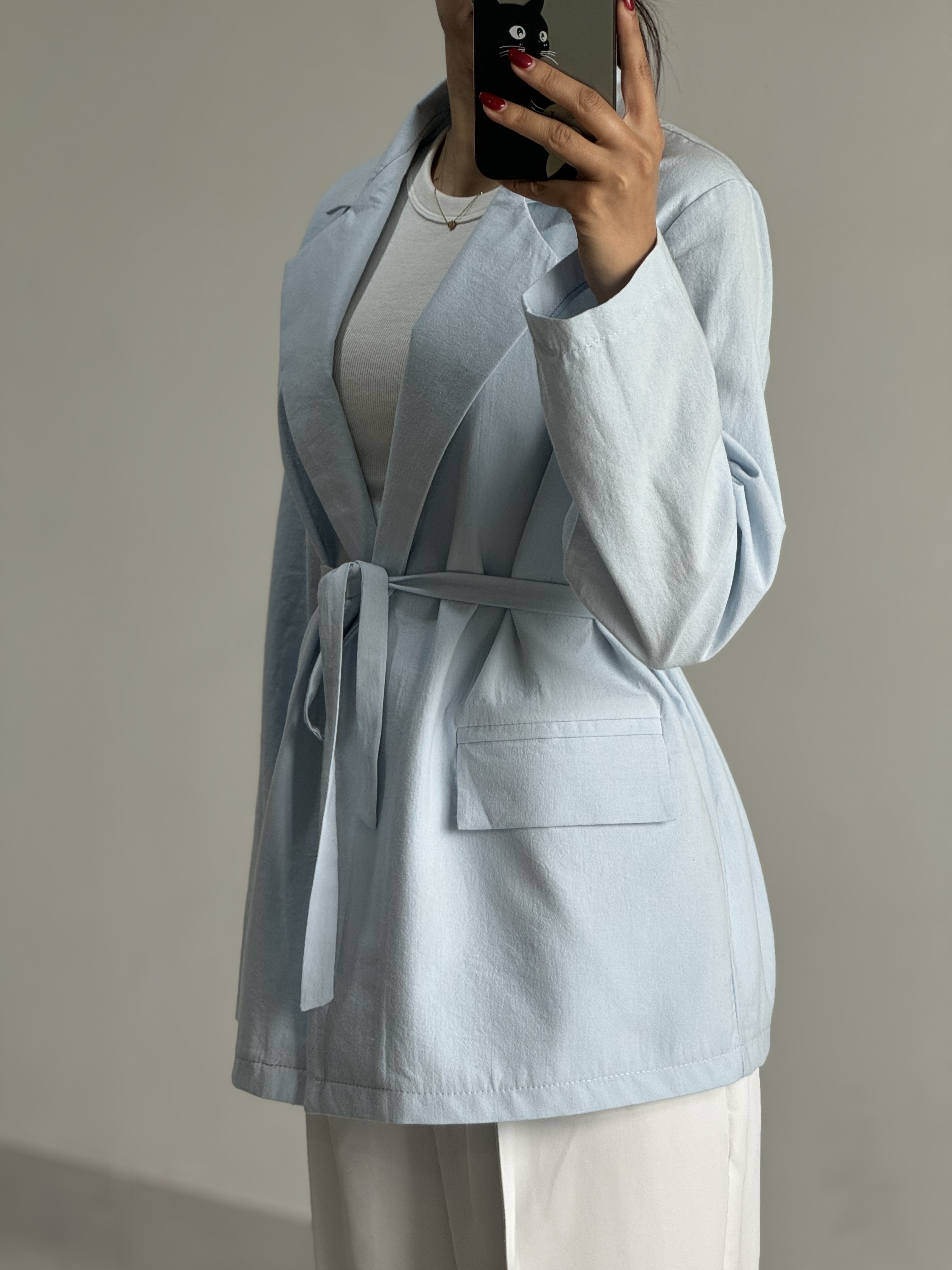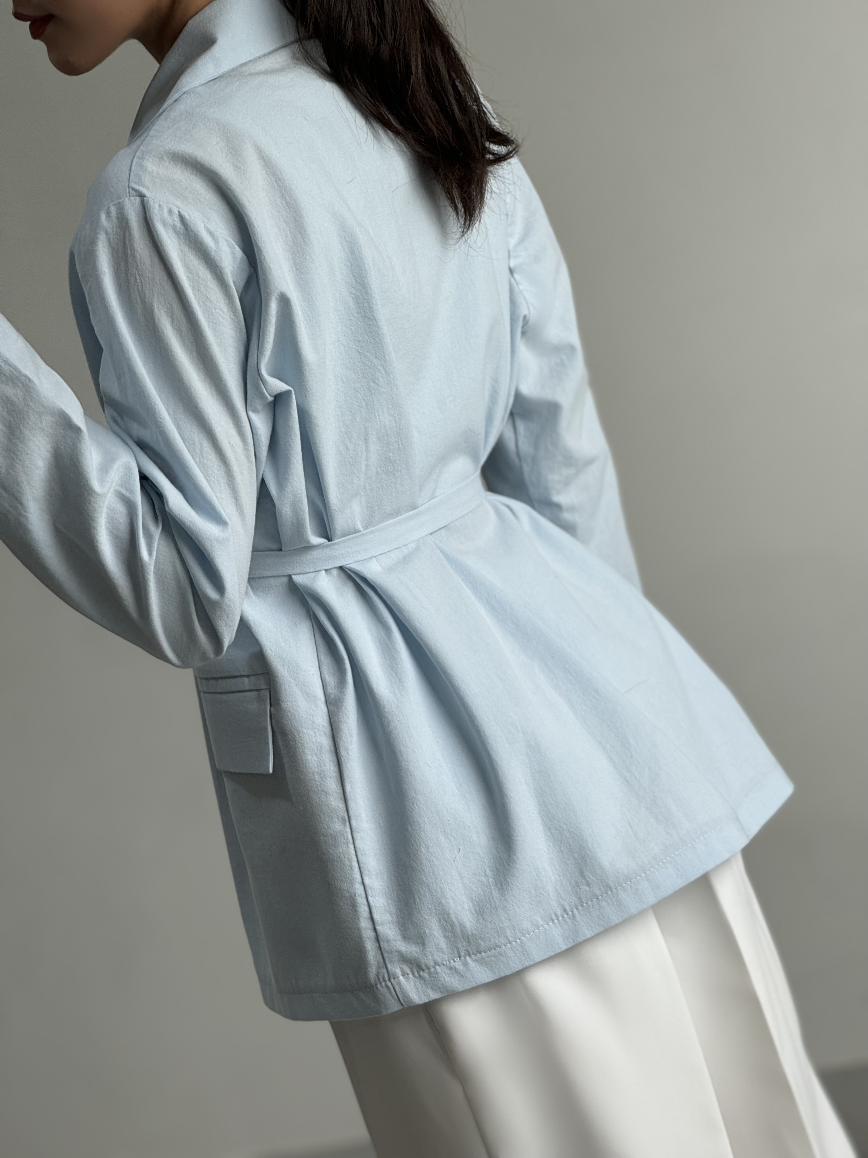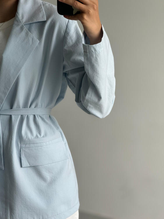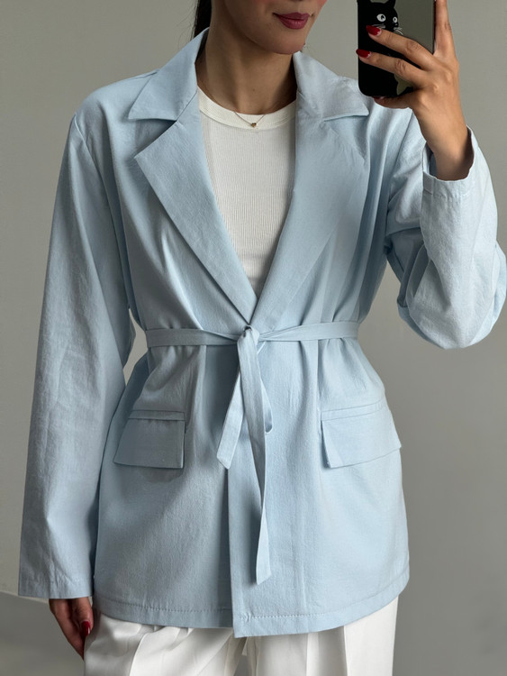 کت زنانه لینن کلاسیک آبی پاستلی