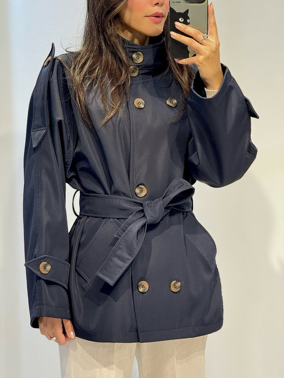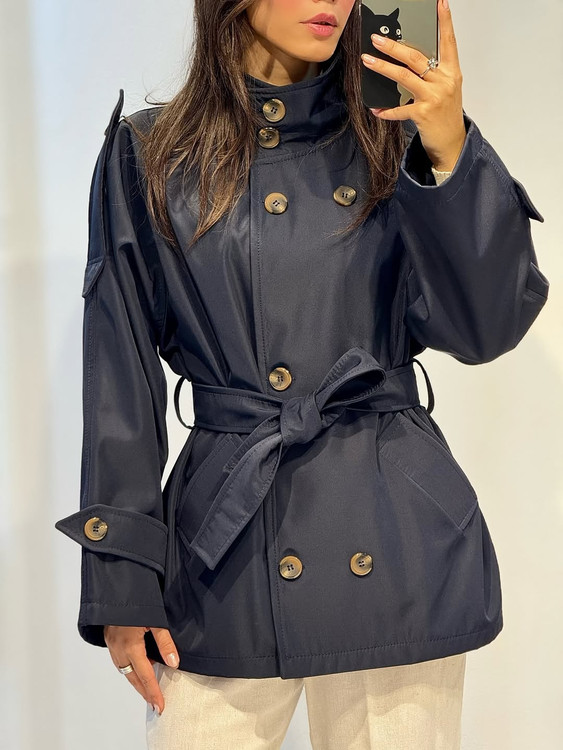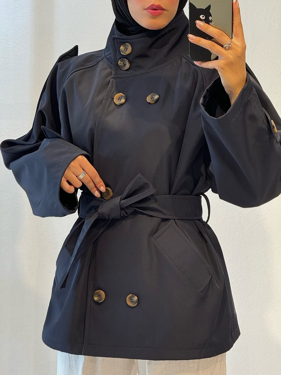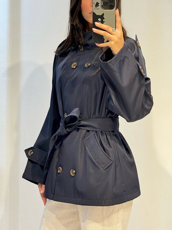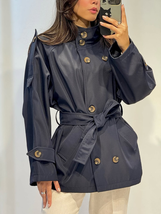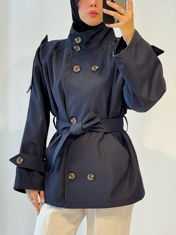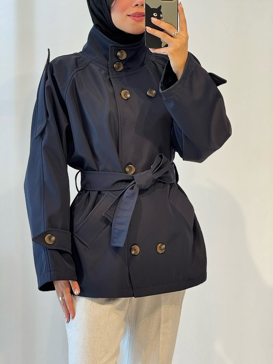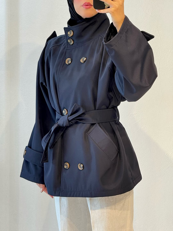 ترنچ کت کوتاه زنانه با پارچهی سانتانا معمولاً انتخابی شیک و کاربردی برای استایلهای روزمره و نیمهرسمی است. خلاصهی ویژگیهاش:
