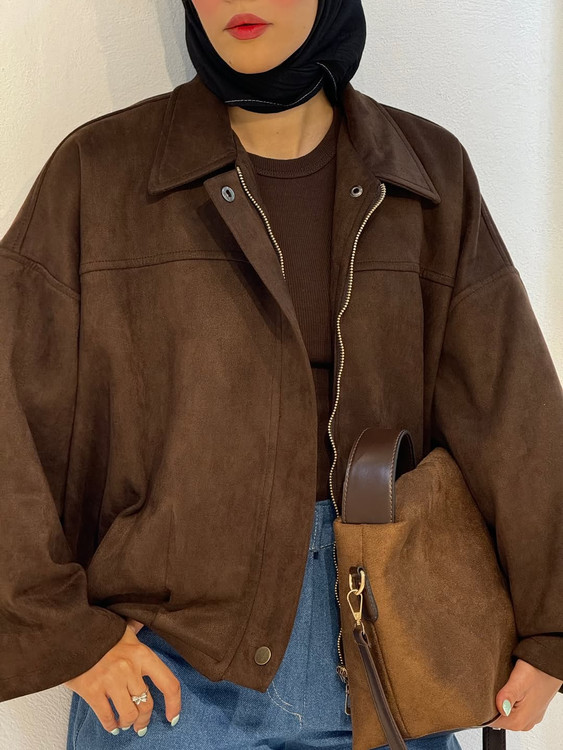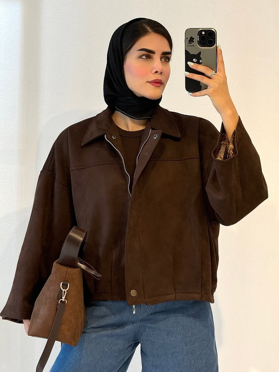 بامبر جکت قهوهای،جیر سوئیت،زنانه
