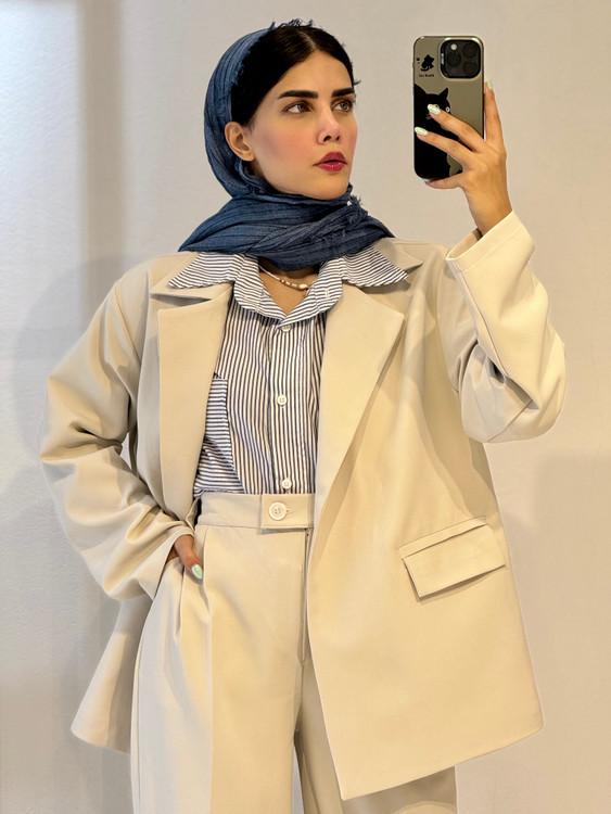 کت فری سایز (۳۶ تا ۴۶) ساپورت میکنه چون حالت اورسایز داره