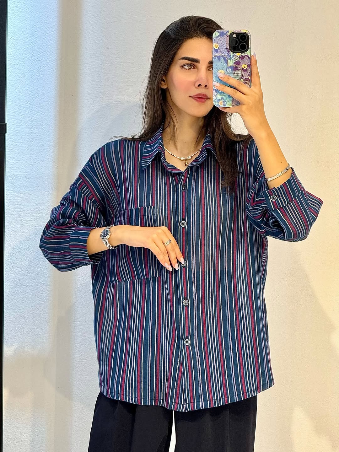 شومیز راه راه وال وارداتی زنانه فری سایز