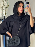 این ست مشکی، بسیار شیک و مینیمال است و برای استایلهای روزمره شیک، قرارهای دوستانه یا حتی محیطهای نیمهرسمی انتخاب عالی محسوب میشود. ترکیب با کیف دستبافت و کفش اسپرت سفید هم به استایل حس مدرن و امروزی داده است