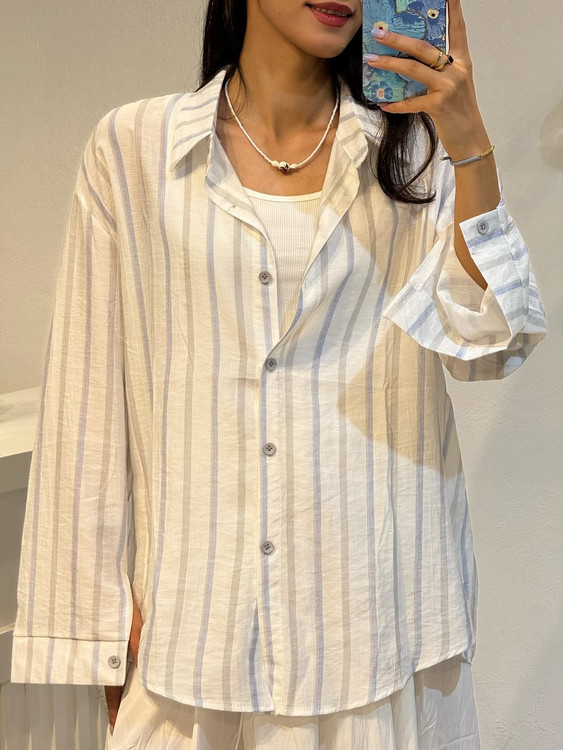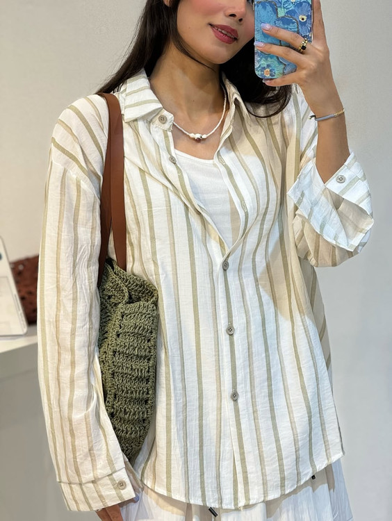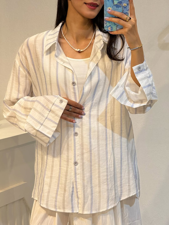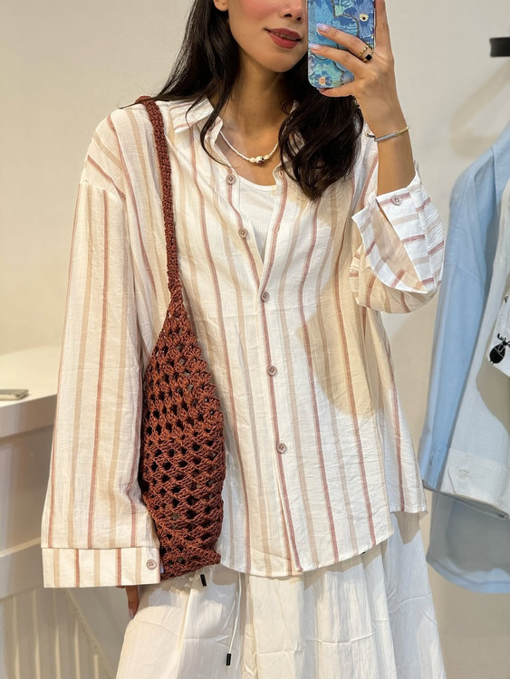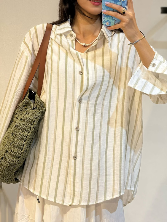 شومیز وارداتی نخی راه راه زنانه تابستانه فری سایز