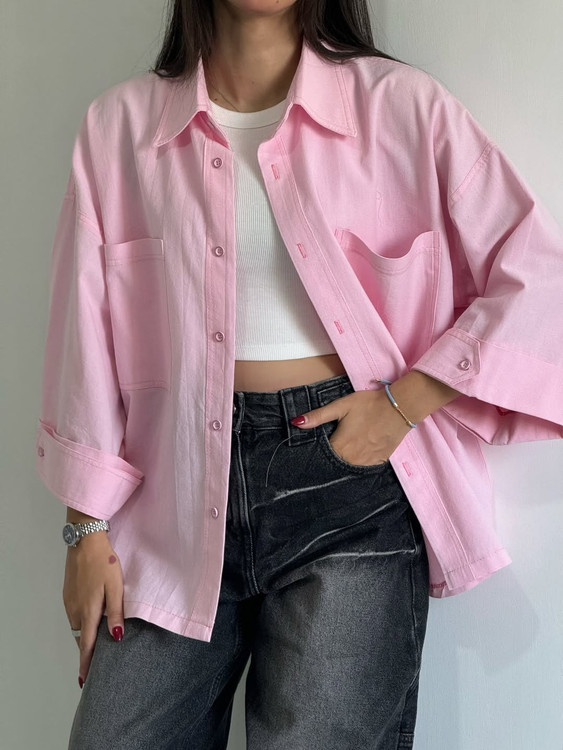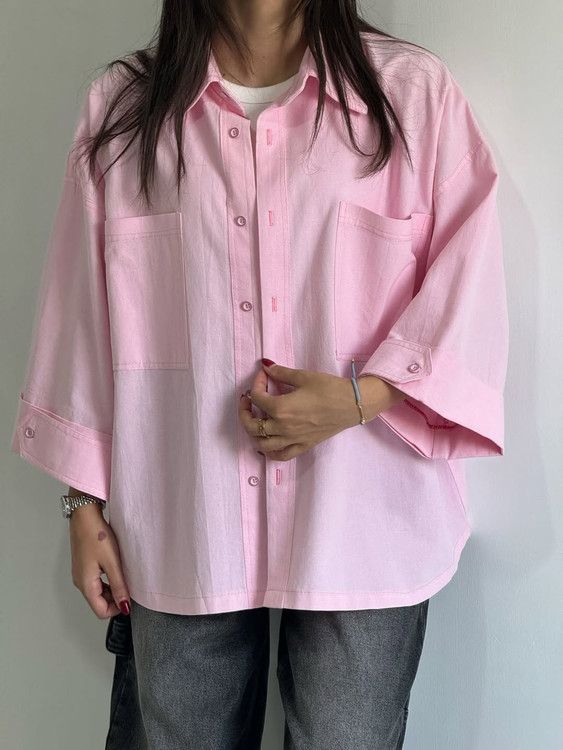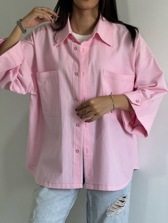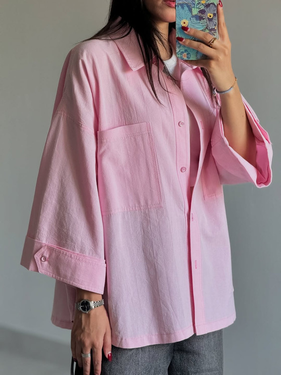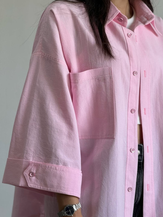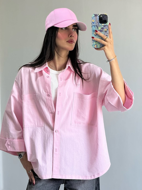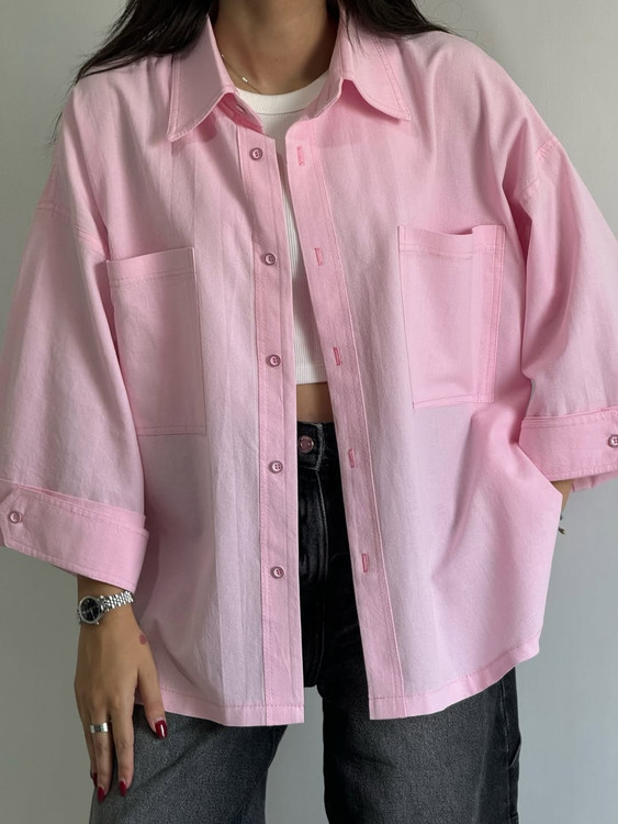 شومیز کوتاه لینن دخترانه صورتی پاستلی