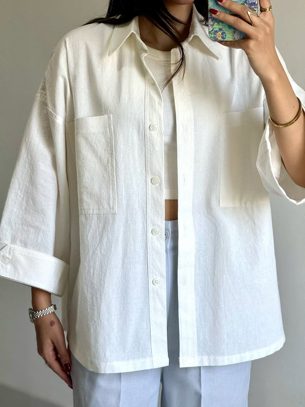 - استایل روزمره تا کژوال: شومیز سفید لینن برای خرید، دانشگاه، رفتوآمد روزانه یا حتی مهمانیهای غیررسمی انتخابی شیک و راحت است. بسیاری از مدلها فریسایز یا طراحی آزاد دارند که حس راحتی بیشتری فراهم میکنند.
