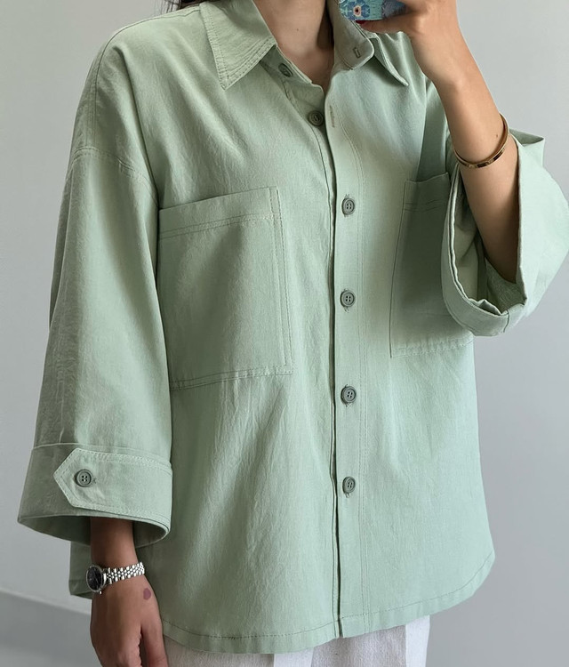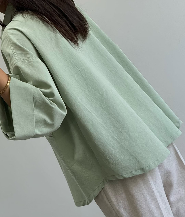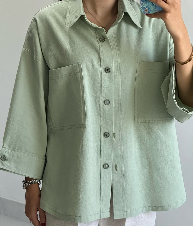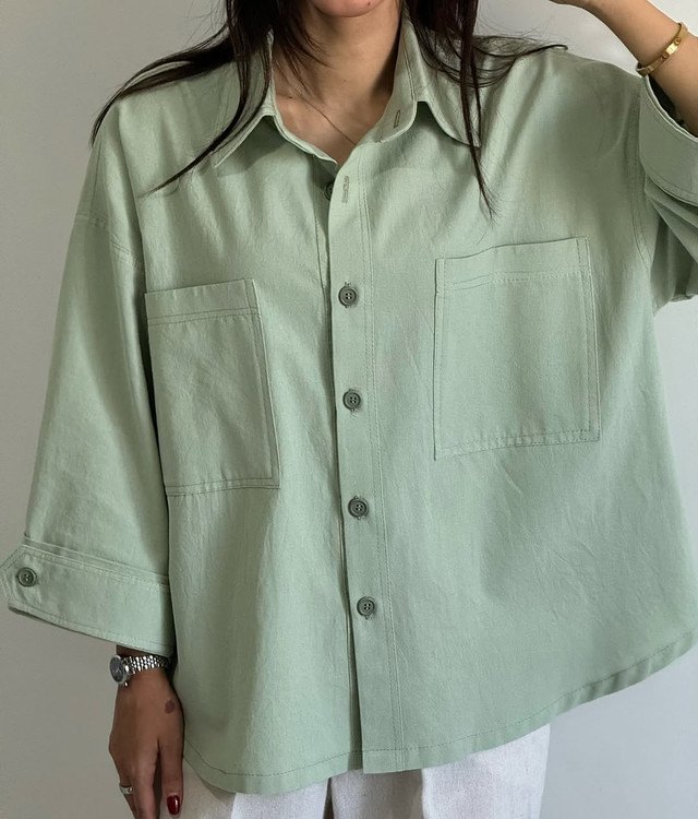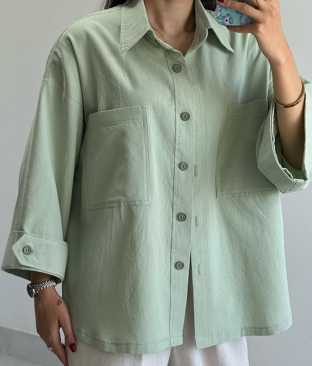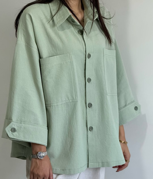 شومیز کوتاه لینن زنانه سبز ماچا فری سایز