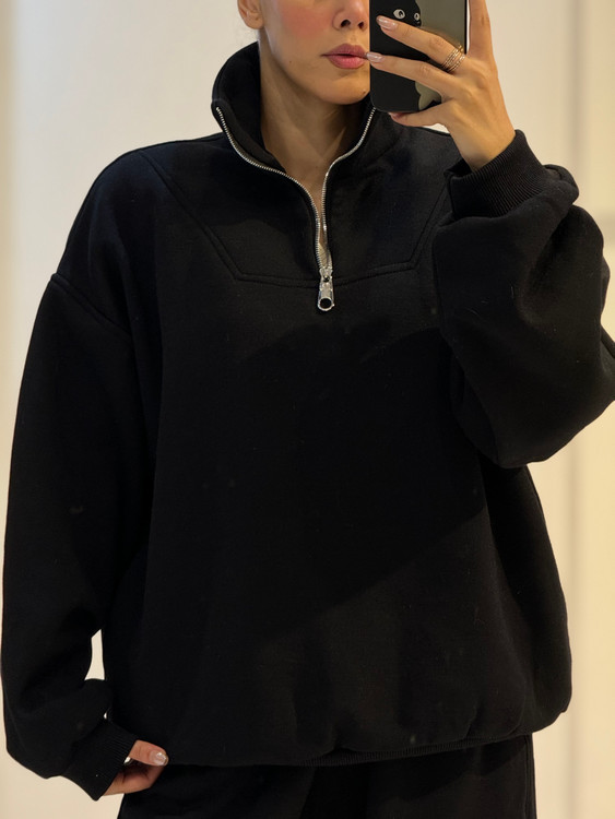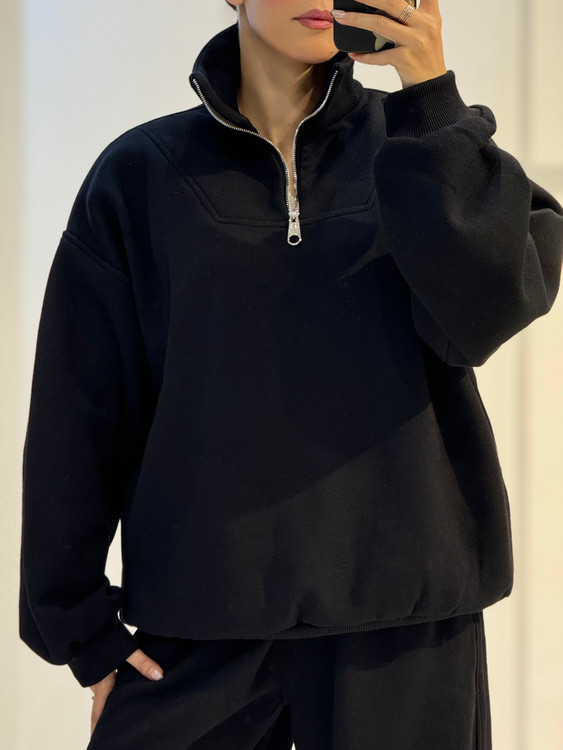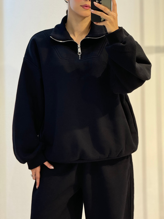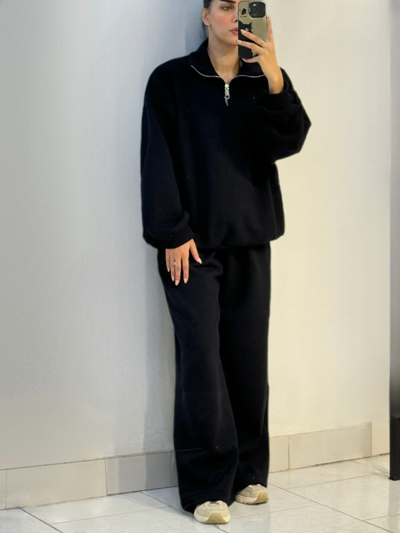ست دورس نیمزیپ فوقالعاده کاربردی و شلوار با داخل کار کاملاً کرکدار و گرم برای روزهای سرد. جنس نرم، راحت و گرم.
